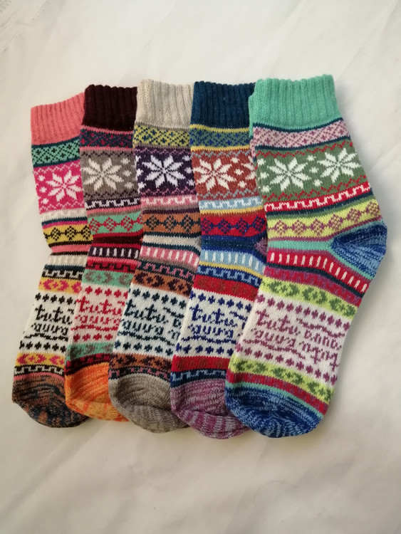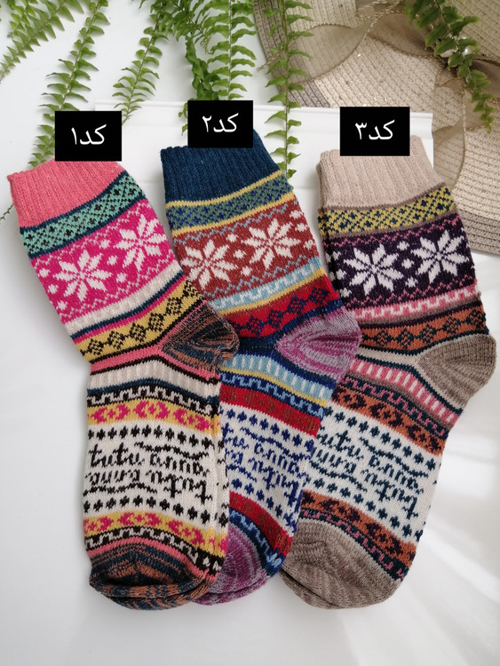 جوراب ساقدار پشمی طرح وینتیج+پاپوش بافت طرح بری بری