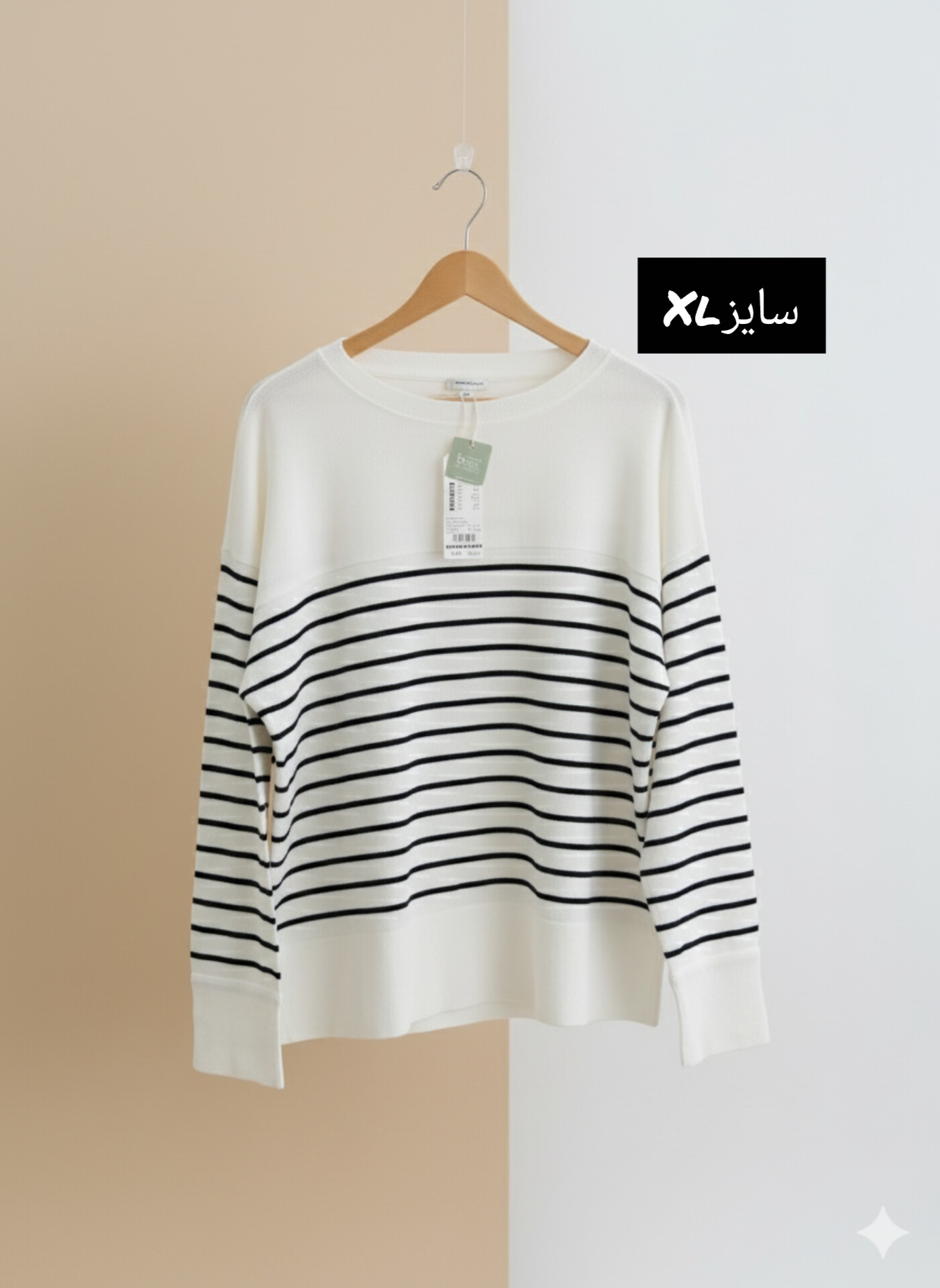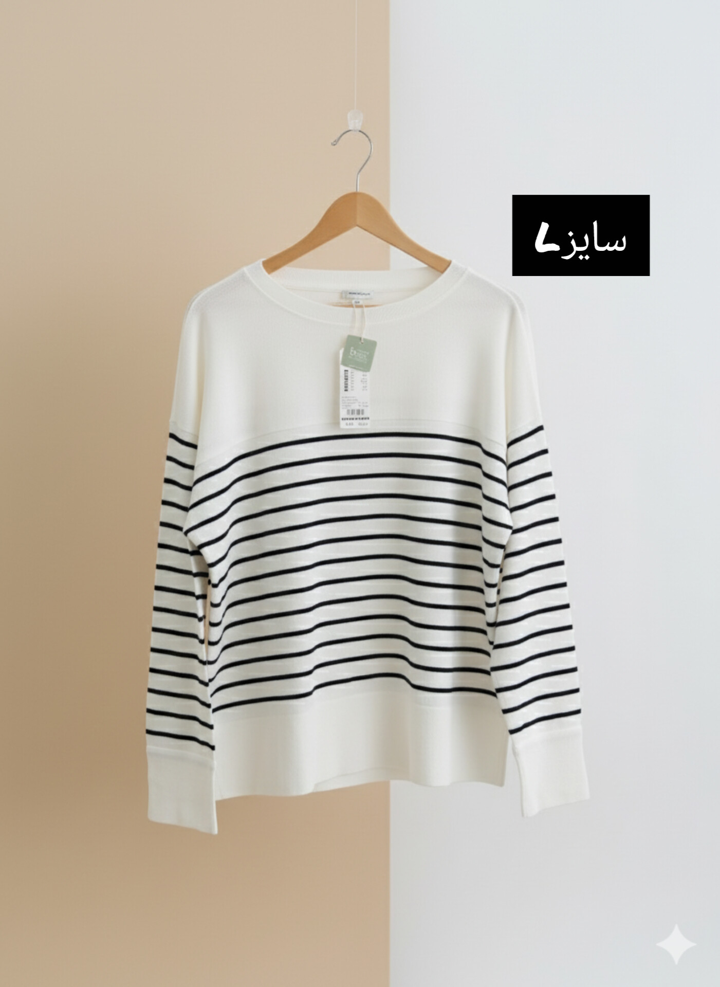 🎀بلوز راه راه سفید کبریتی دنبال ی لباس راحت برای زیر پالتو، کاپشن، ترنج کتتی این برای توااا.