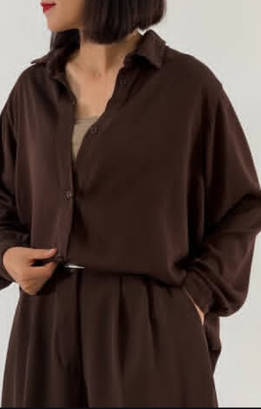 🎀شومیز کتان سیلک ریزش دار قهوه ای ✨سبک و راحت، جنس پارچه سیلک بسیار نرم و لطیف ریزش دار، ✨فری سایز👈مناسب برای سایز ٣٨ تا ۴٨ ✨دورسینه ١١٢/قدشومیز ۶٧ 📍لطف به مطالب گفته شده دقت کنید. 🌿تشکر